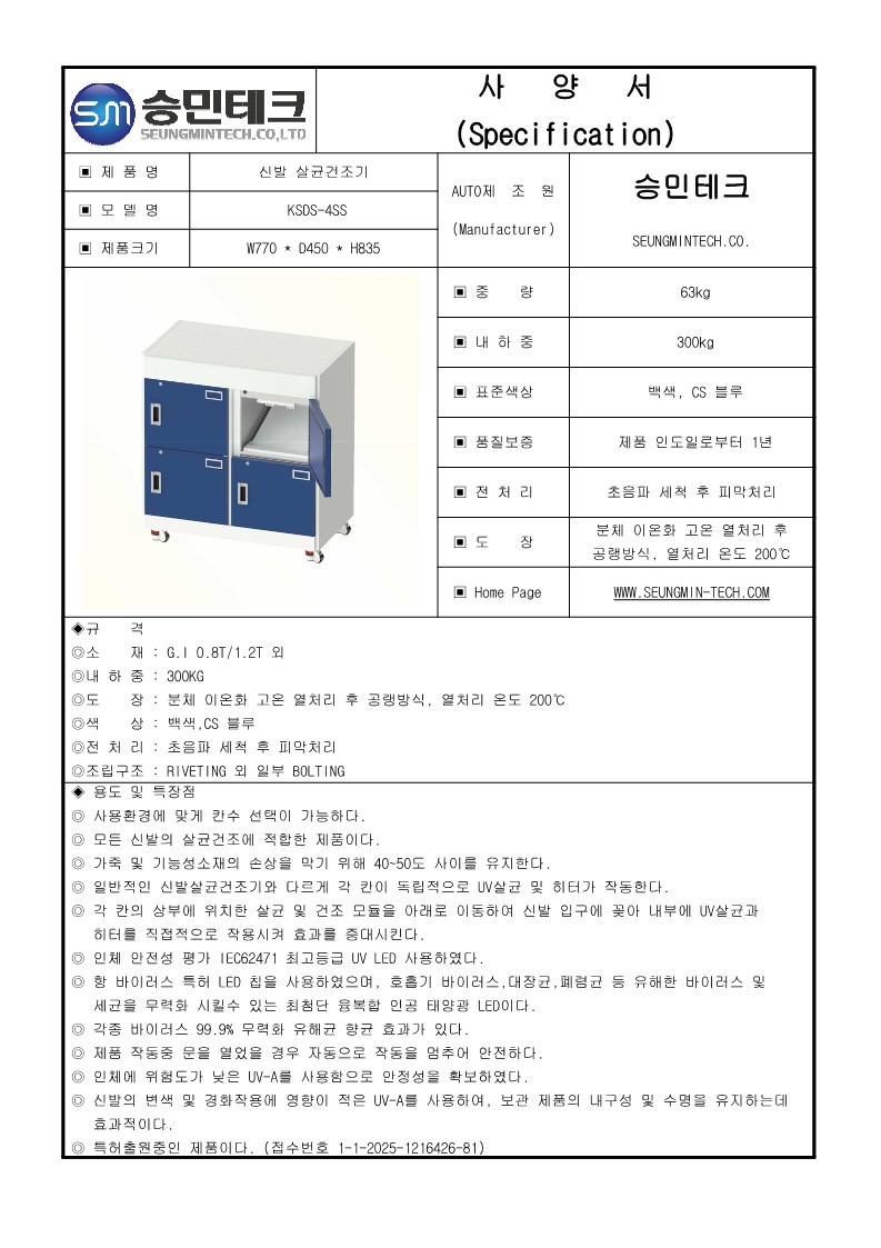독립적 공기순환 시스템으로 살균,탈취,건조하는 제품