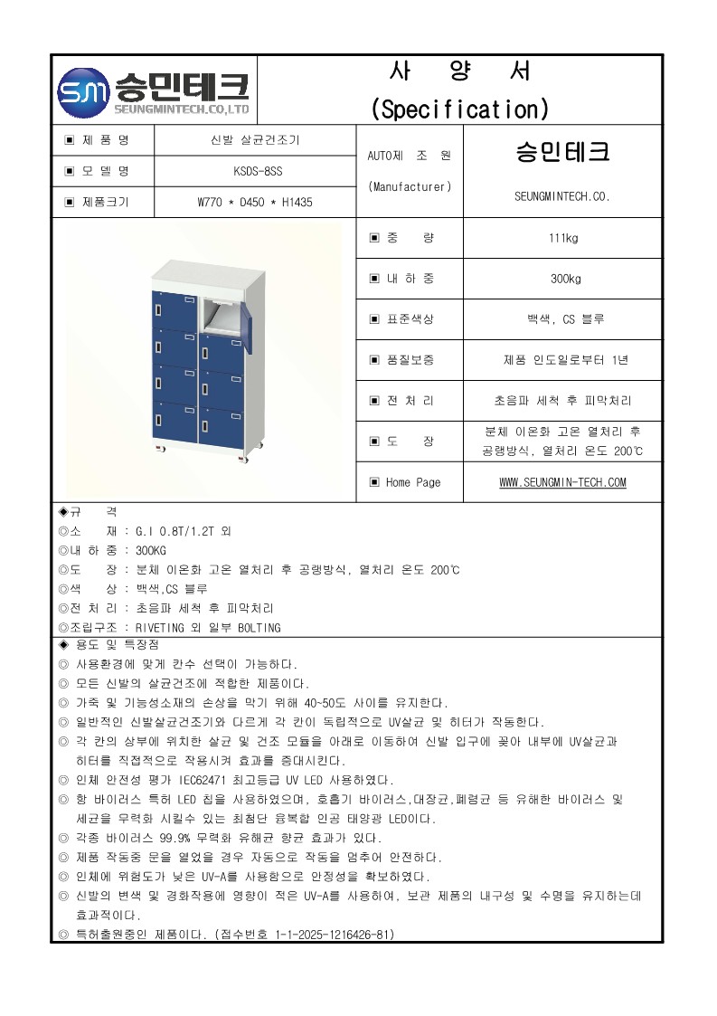 독립적 공기순환 시스템으로 살균,탈취,건조하는 제품