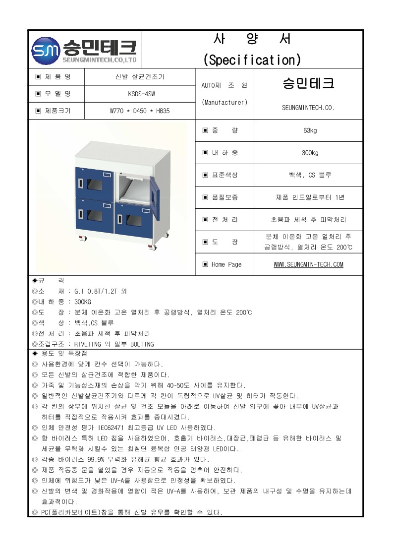 독립적 공기순환 시스템으로 살균,탈취,건조하는 제품