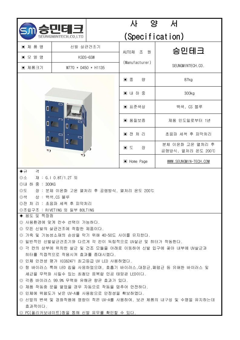 독립적 공기순환 시스템으로 살균,탈취,건조하는 제품