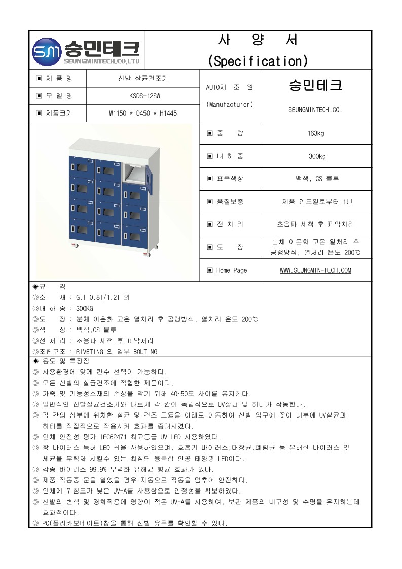 독립적 공기순환 시스템으로 살균,탈취,건조하는 제품