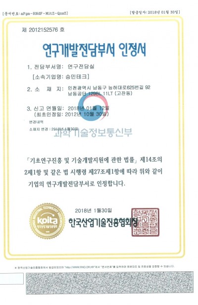 연구개발전담부서 인정서