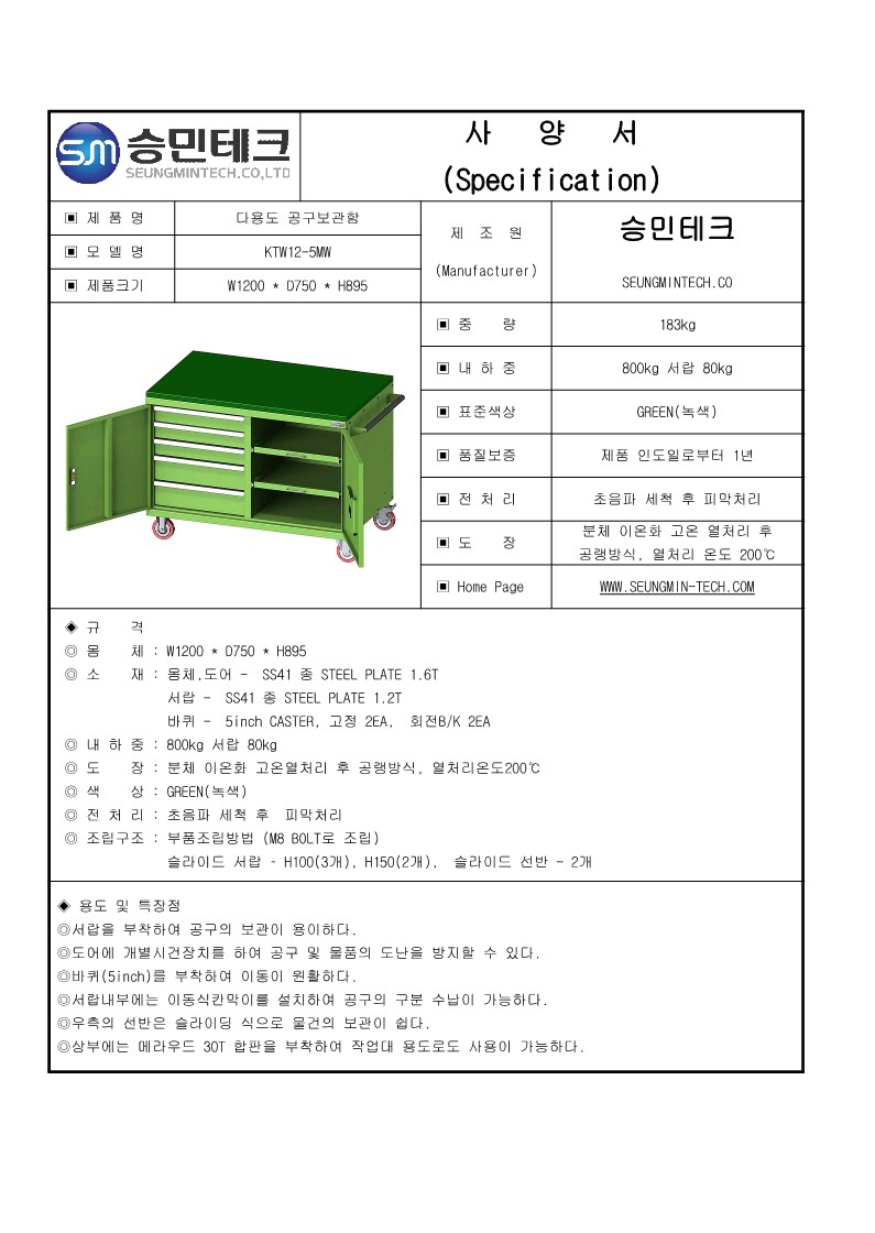 ◎내 하 중 : 800Kg 서랍 80Kg