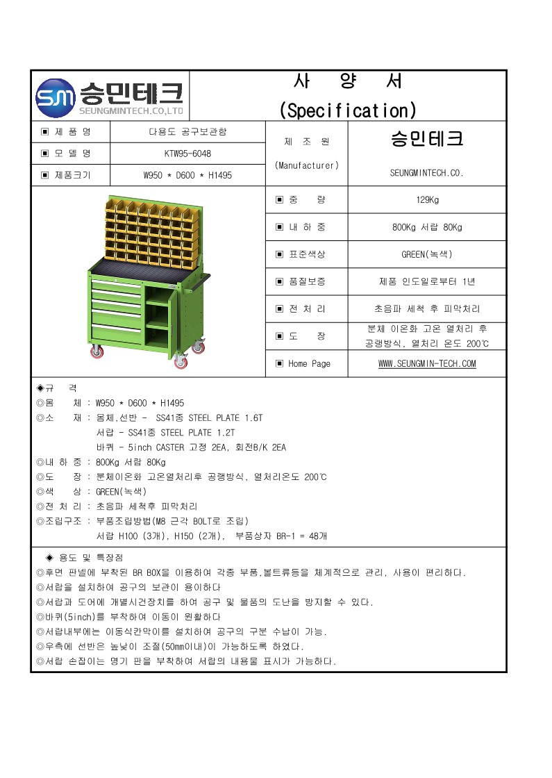 ◎후면 판넬에 부착된 BR 박스 를 이용하여 각종 부품,볼트류를 체계적으로 관리사용하기편리함