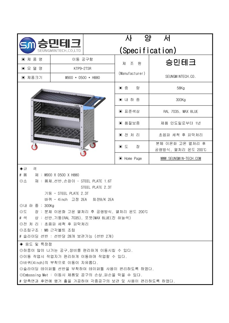 공구,장비를 보관하며,이동작업시 작업자가 편리하게 이동하면서 사용할수 있는 제품