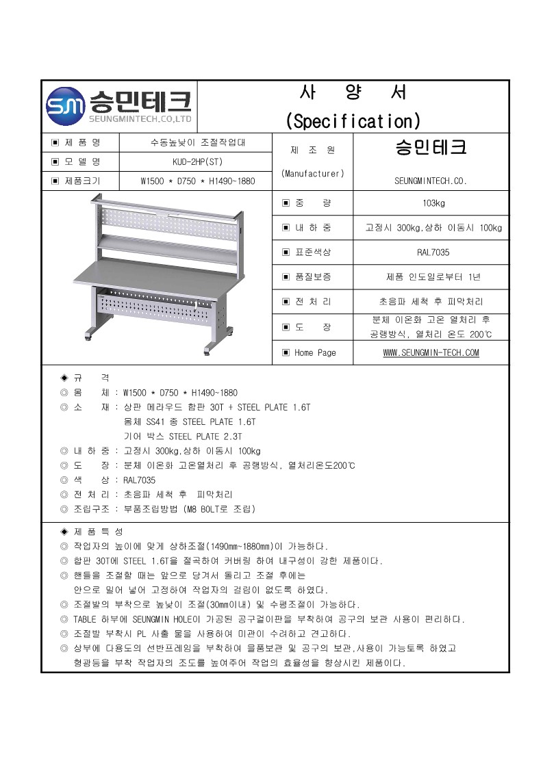 작업자의 높이에 맞게 상하조절 수동조절로 가능한 작업대