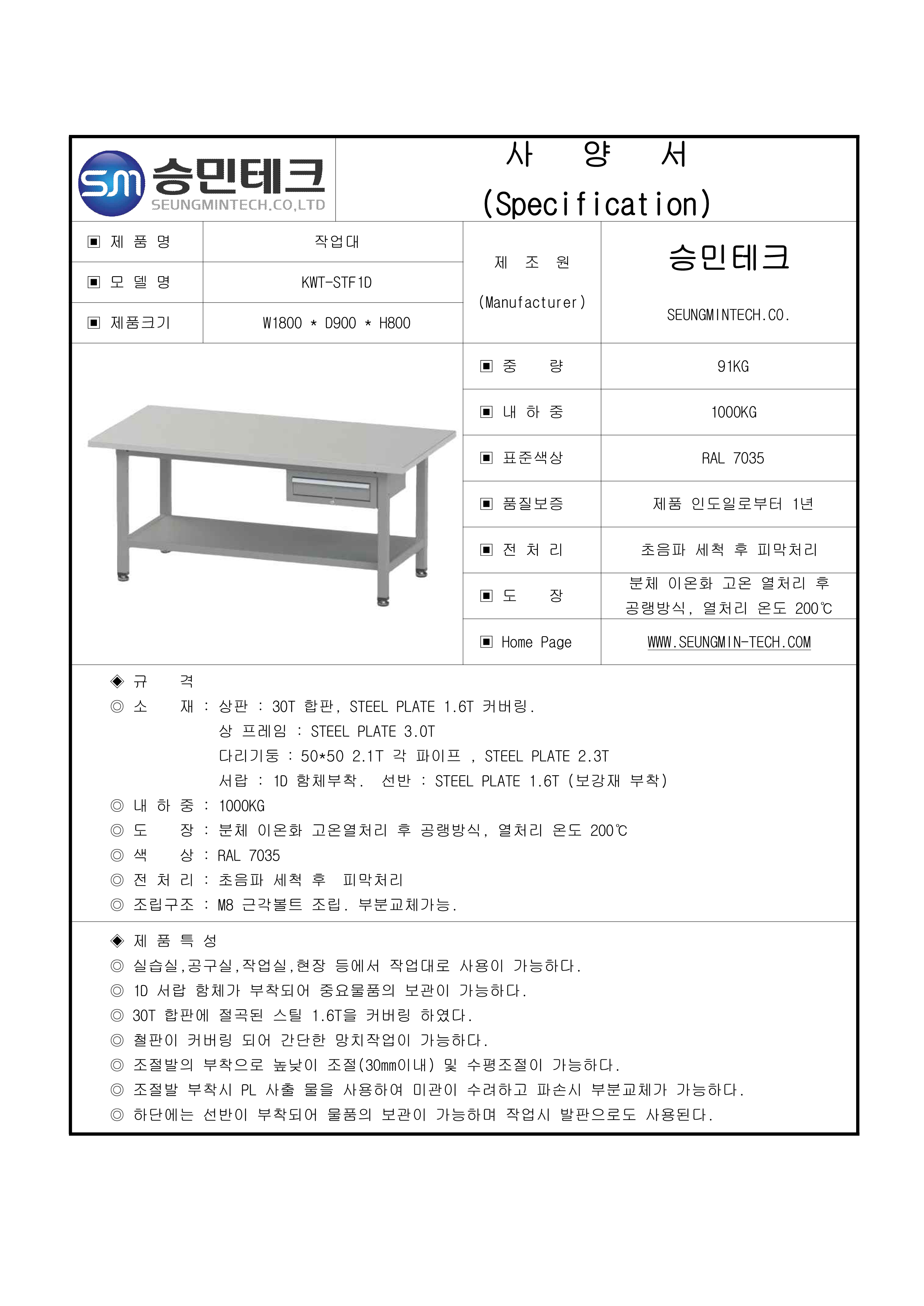 ◎ 도 장 : 분체 이온화 고온열처리 후 공랭방식, 열처리 온도 200℃