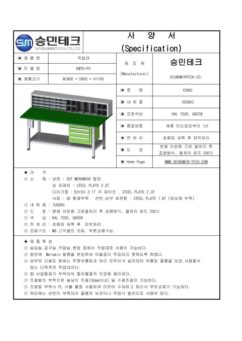 ◎ 도 장 : 분체 이온화 고온열처리 후 공랭방식, 열처리 온도 200℃