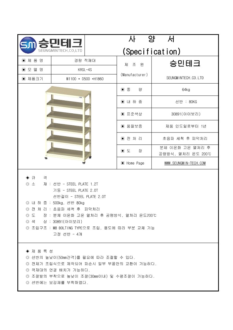 ◎ 소 재 : 선반 - STEEL PLATE 1.2T 기둥 - STEEL PLATE 2.0T