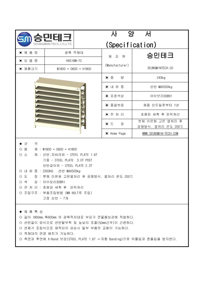 ◎ 내 하 중 : 2500KG 선반 MAX500kg